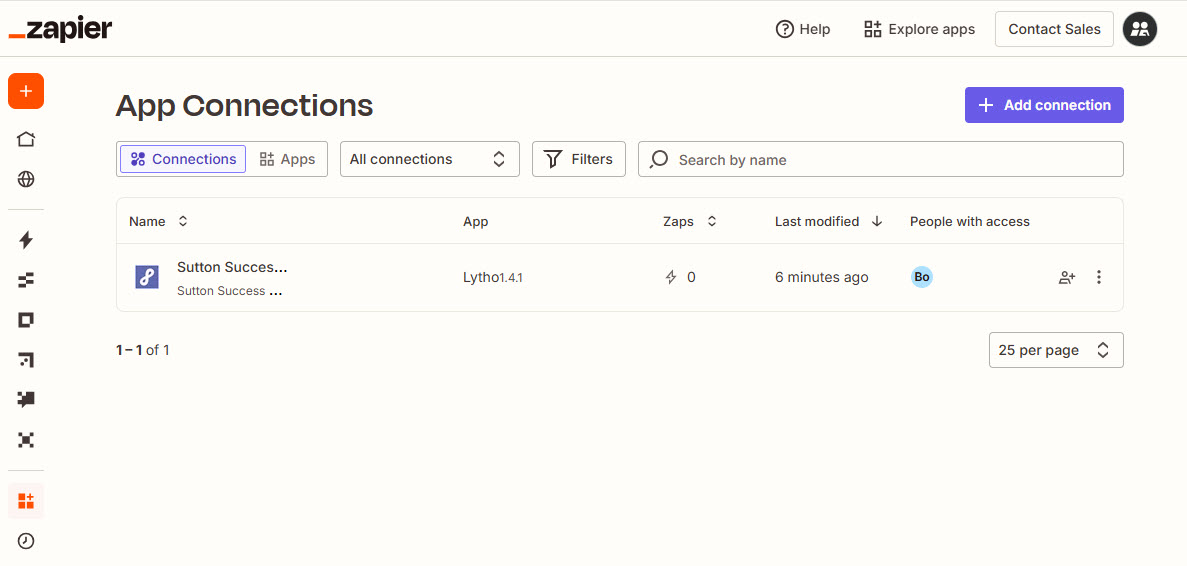 Repeat this step for any platforms you will want to connect to and from. Now when creating Zaps with Lytho you'll be able to easily select your account information for all of your automation creations.