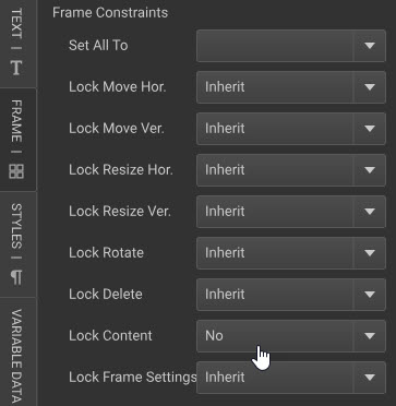 By default, all the elements of your artwork are locked down for the end user. They can't interact with anything unless you create variables or release some constraints. As a result, the content within the text frame is locked, meaning users cannot edit it inline.